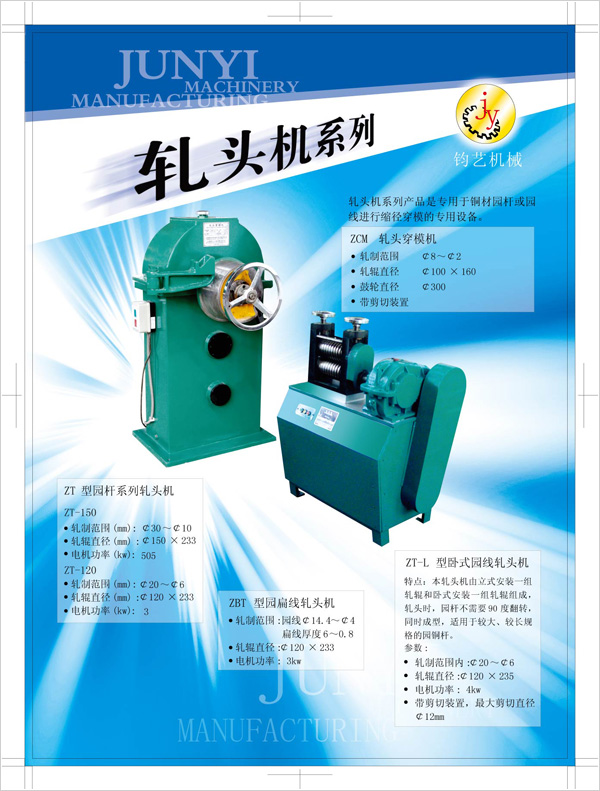 轧头机系列 轧头机系列产品是专用于铜材园杆或园线进行缩径穿模的专用设备。