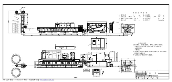 机组构成: 本机组主要由放线架、拉线主机、连续退火装置、储线装置、双盘收线装置、齿轮箱润滑油系统、电控系统,并附有轧头穿模机相配套,组成整套机组